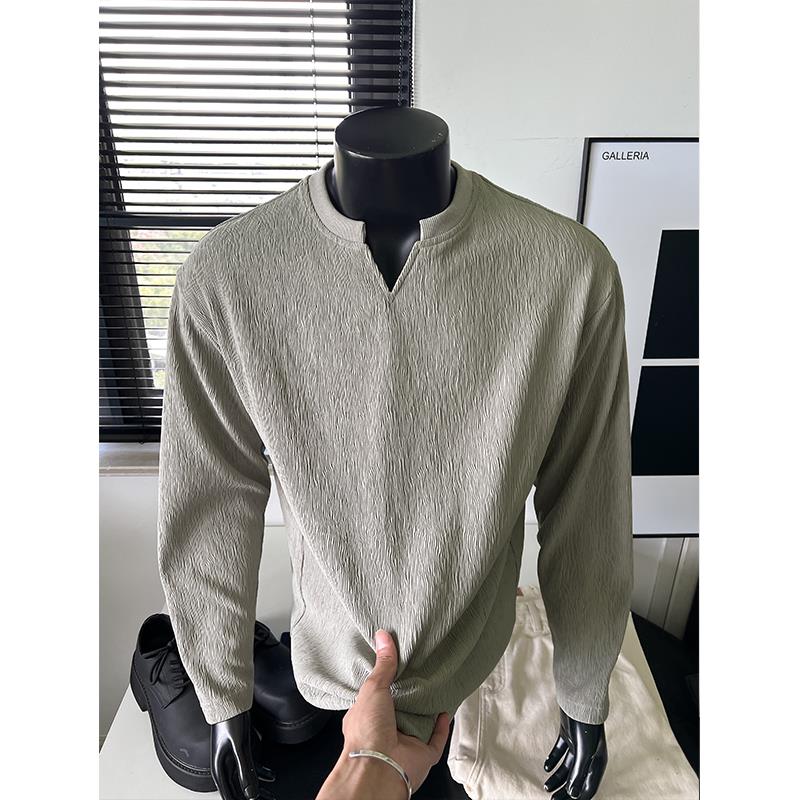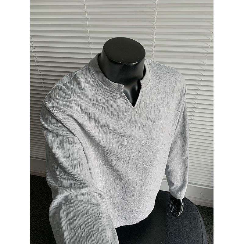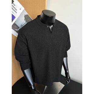 百搭1013k 潮牌痞帅上时尚 秋冬打底t恤内搭白色肌理感v领长袖 男款