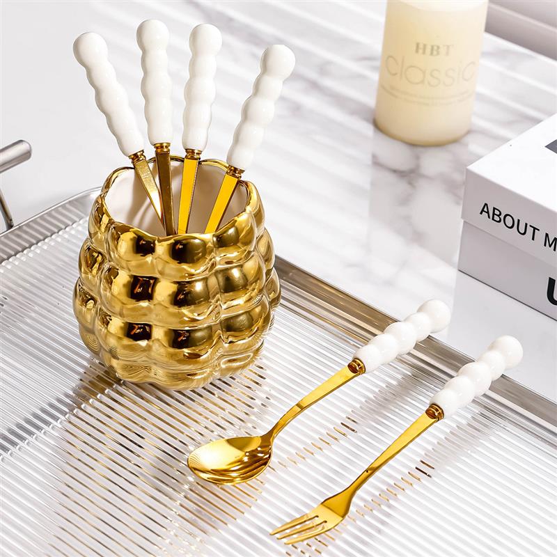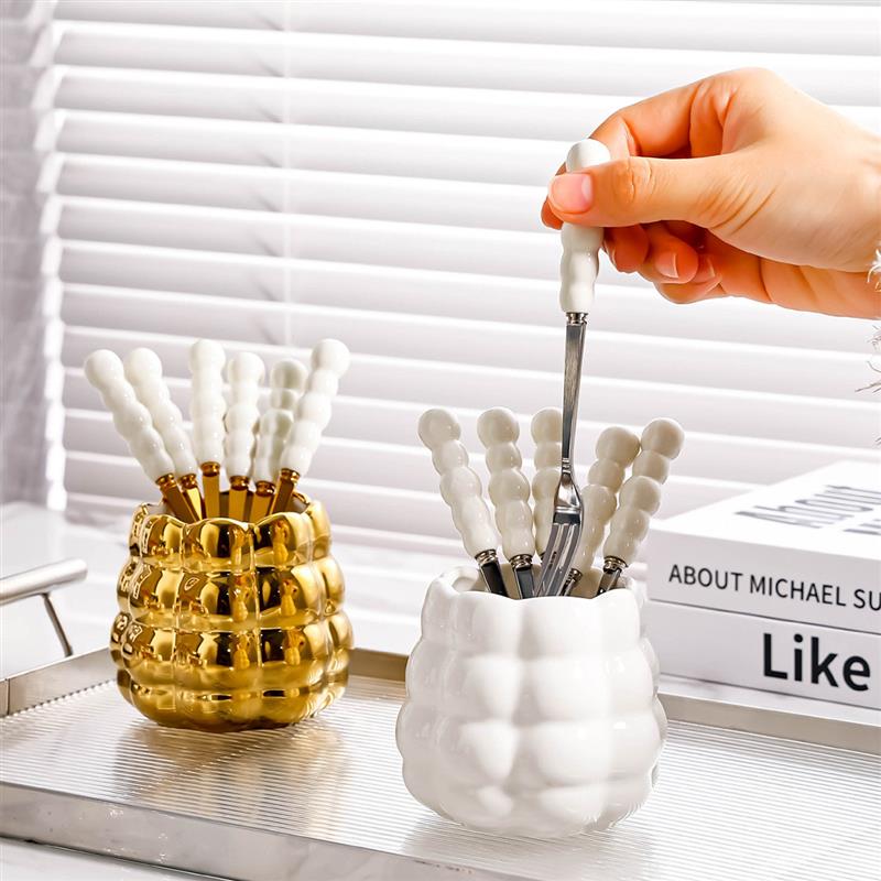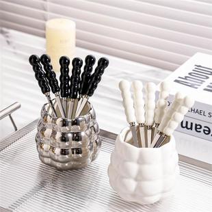 水果叉子家用不锈钢蛋糕高端可爱儿童安全水果签小叉子轻奢收纳罐