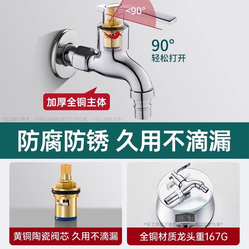 卡扣式 4分水嘴自来水单冷龙头螺纹 洗衣机水龙头专用全铜家用正品