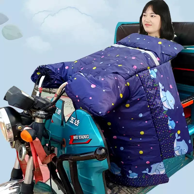 通用 电瓶摩托防风防水罩四季 电动车挡风被冬季 加绒加厚全包斗篷式
