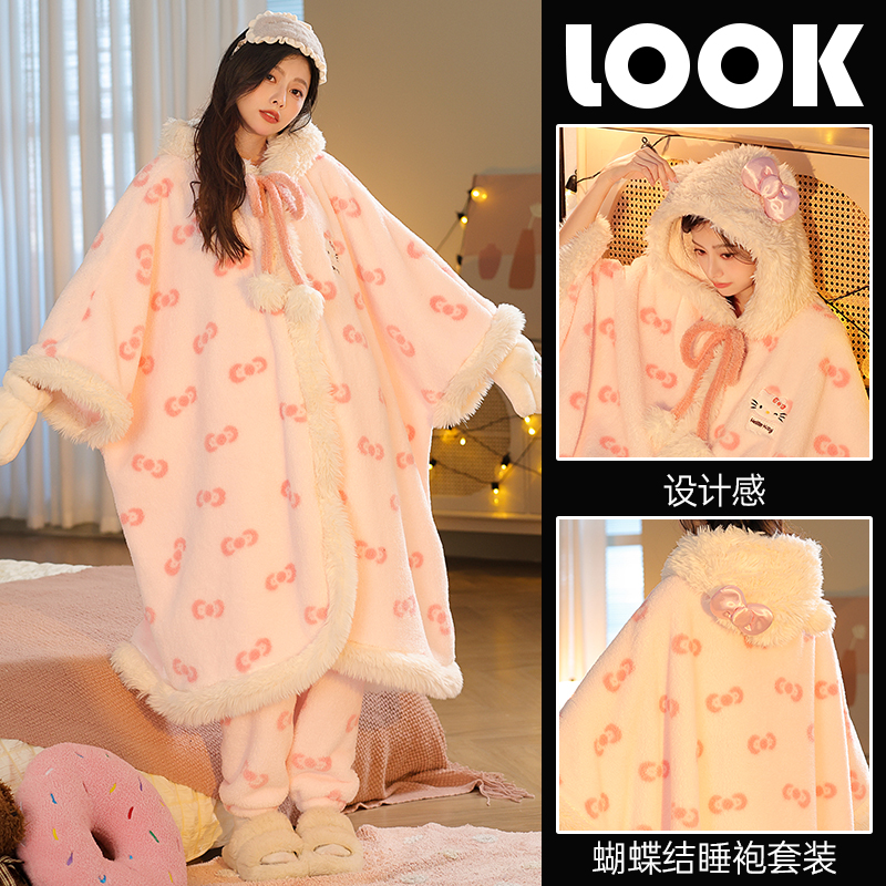 斗篷披风睡衣家居服 珊瑚绒长款 甜朵屋hellokitt睡袍女秋冬季 新款