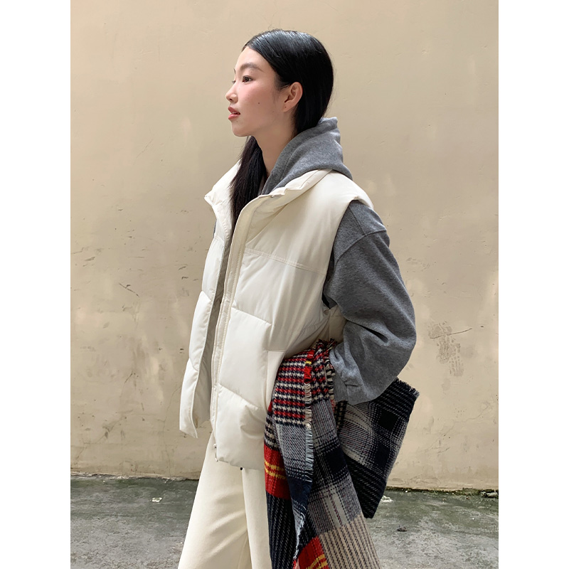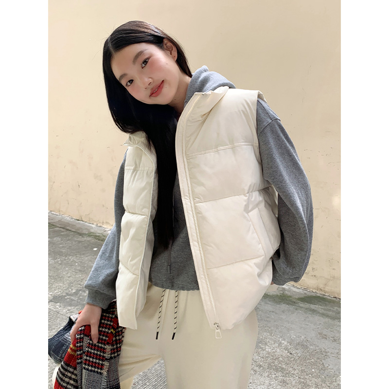 加厚宽松保暖背心外套 美式 NOB真维斯米白棉马甲女士2025新款 冬季