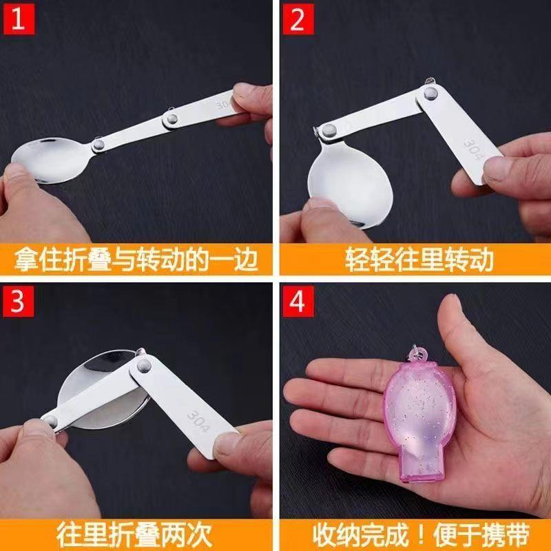 餐具 可携式 汤匙野炊餐具汤匙饭 户外旅行 创意304不锈钢折叠勺子