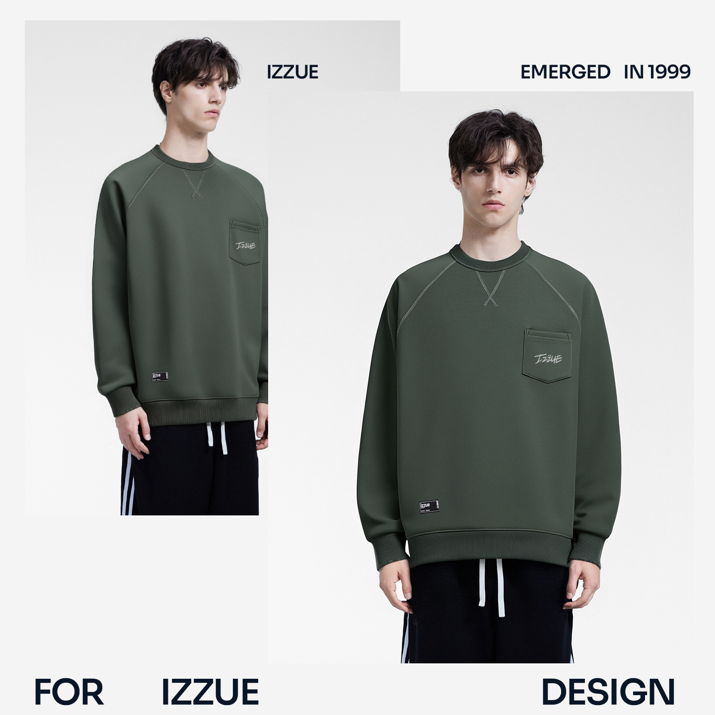 三角卫衣男2025冬格雷摇粒插肩袖 潮牌加绒美式 上衣A izzue新款