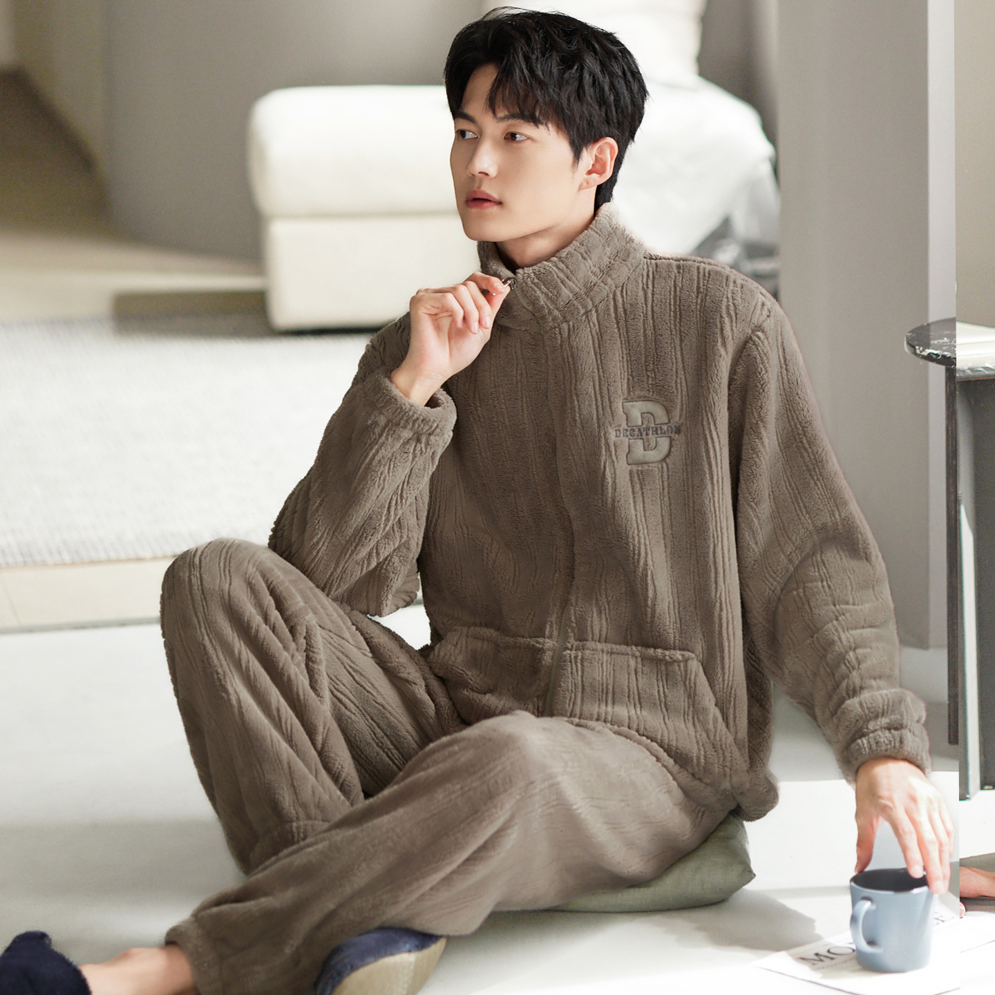 秋冬法兰绒可外穿冬款 珊瑚绒加厚加绒保暖男款 家居服 冬季 睡衣男士