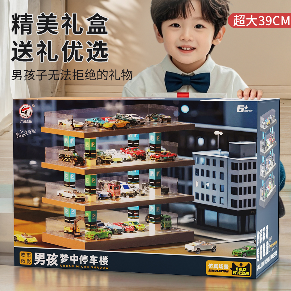 淘童年儿童停车场玩具车库仿真灯光小汽车模型收纳架男孩节日礼物