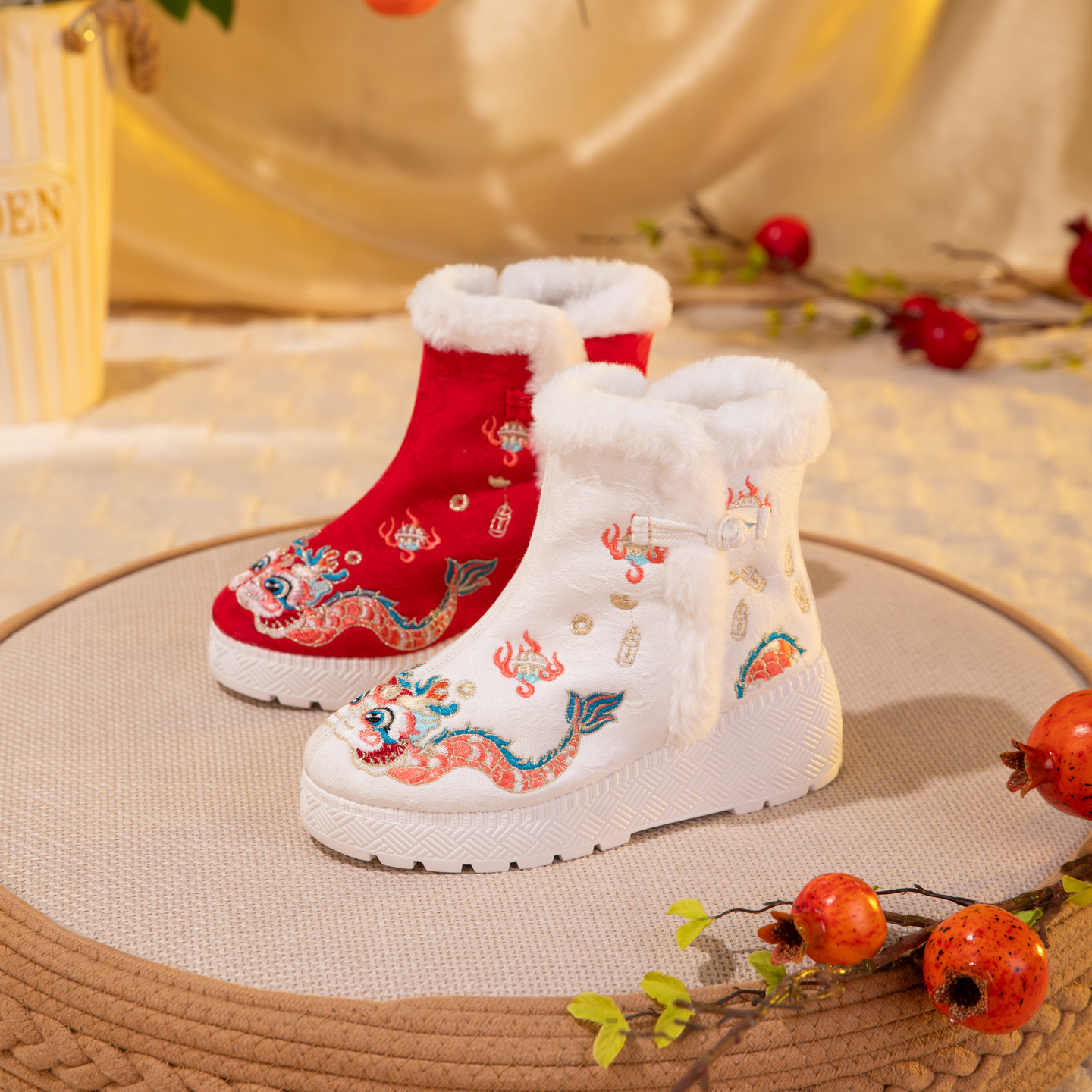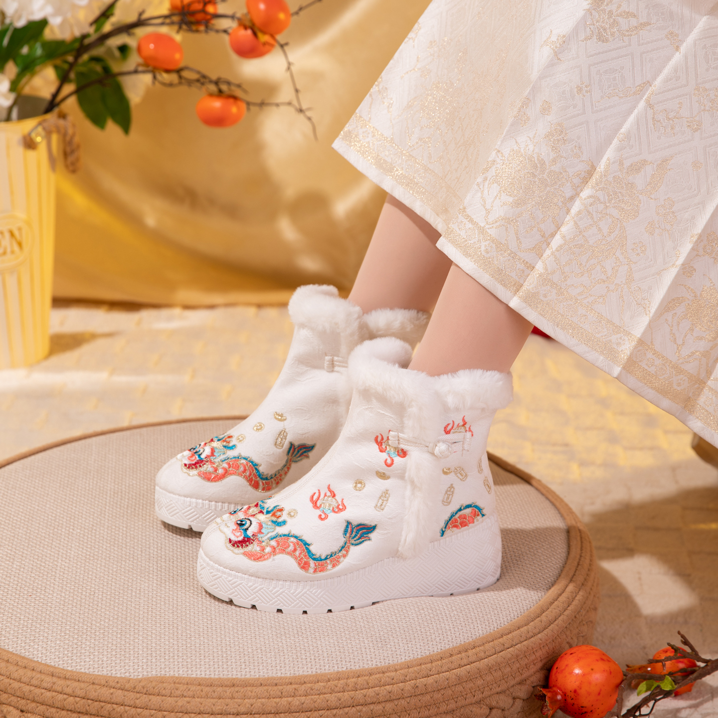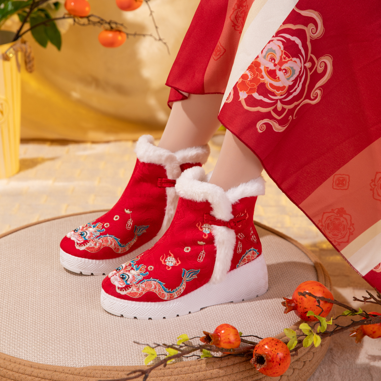 短靴 国风靴子新中式 汉服棉靴女冬季 加绒保暖雪地靴民族风绣花棉鞋