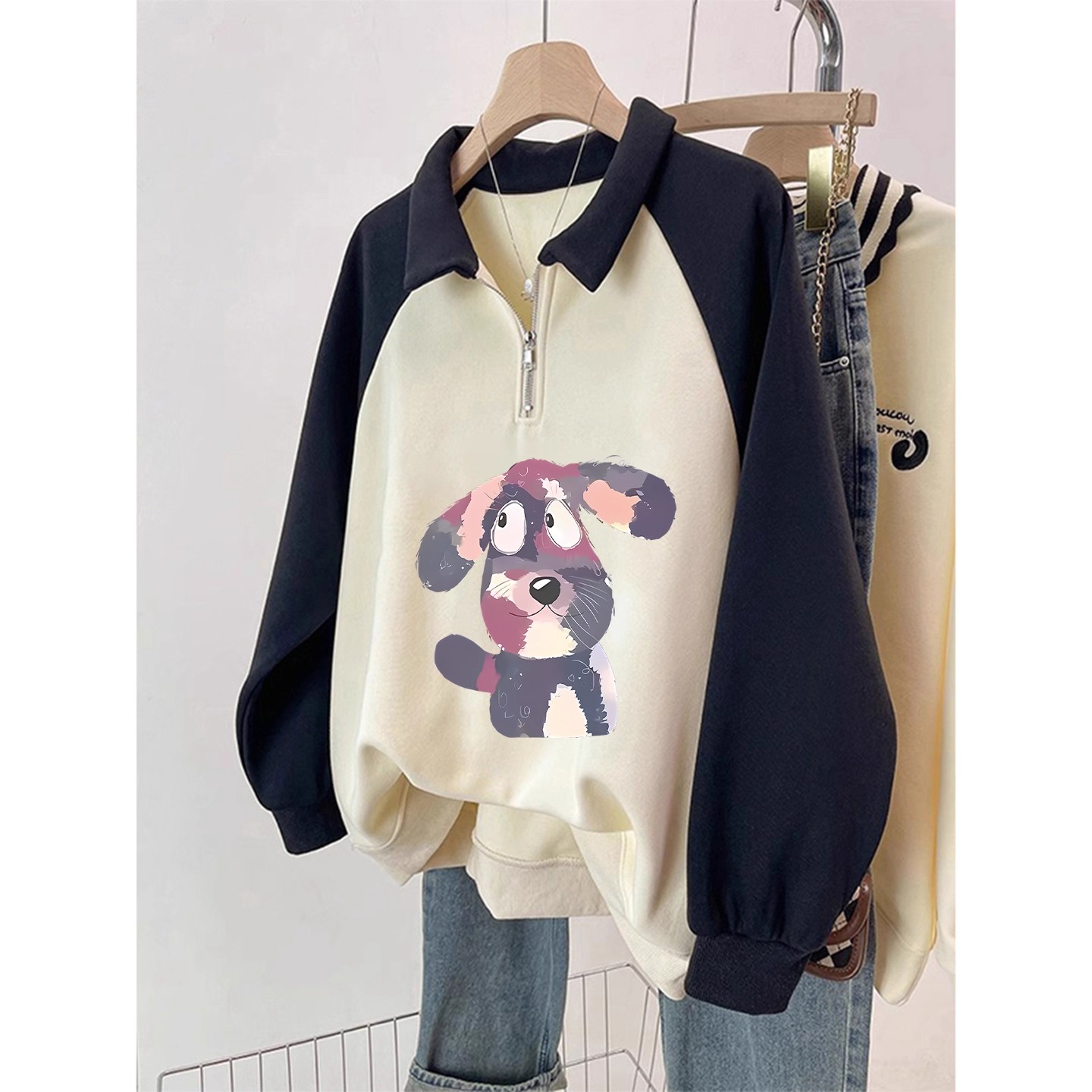 胖mm大码 新款 Polo领印花宽松显瘦上衣 潮流百搭无帽卫衣女秋季 美式