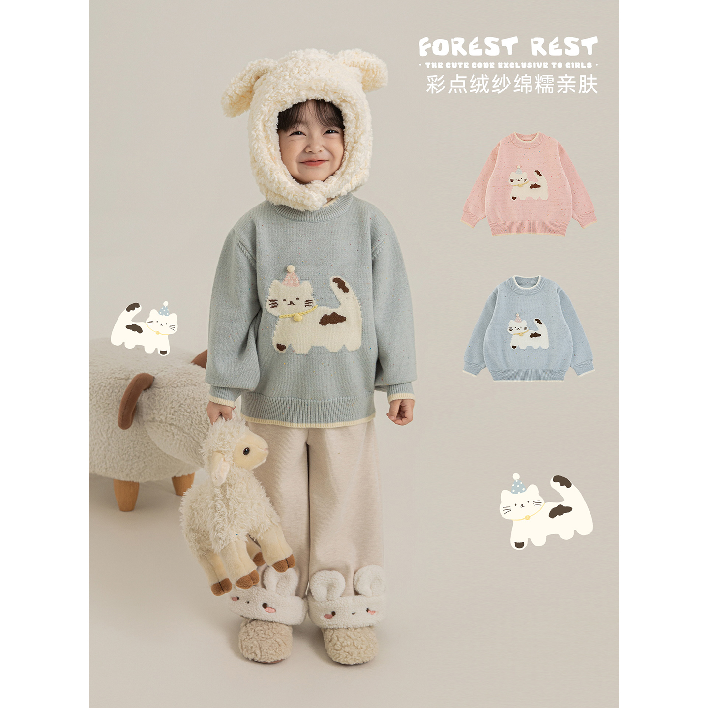 毛衣女慵懒设计感早秋上衣 甜美猫咪针织衫 王艺瑾同款 ablueberry