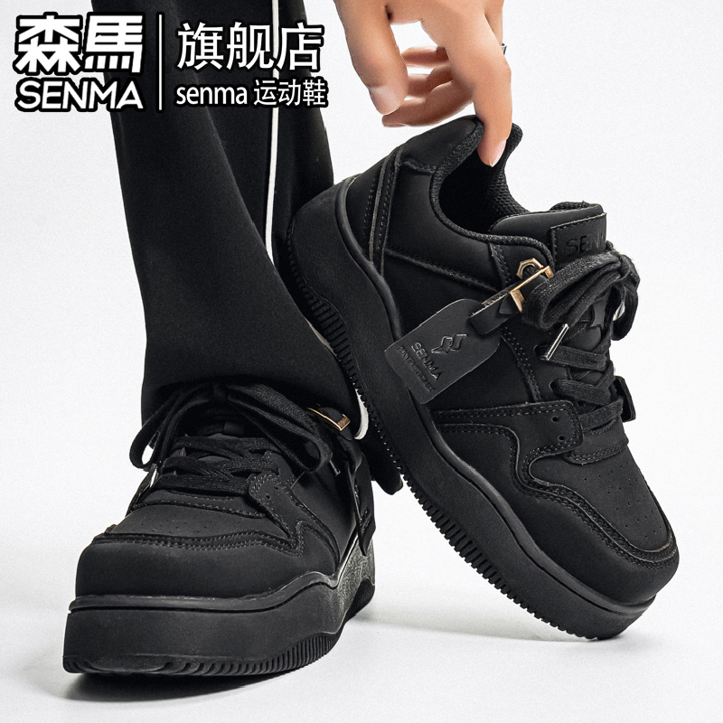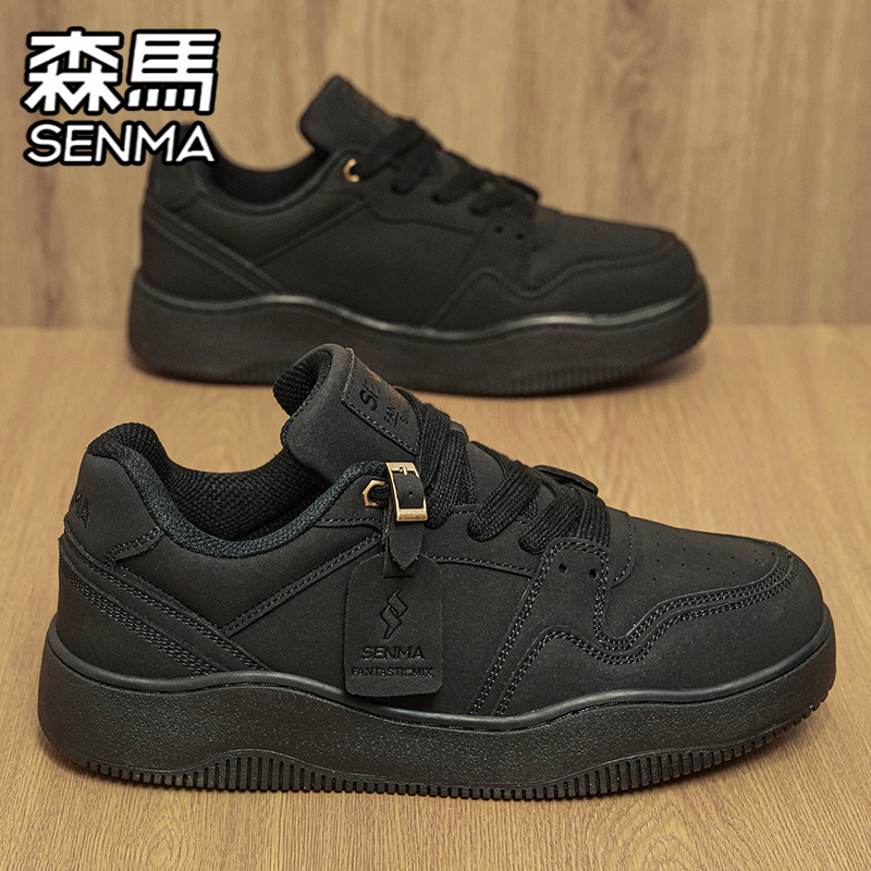 青少年厚底增高纯黑色潮鞋 森马男鞋 运动休闲低帮板鞋 秋季 2025新款