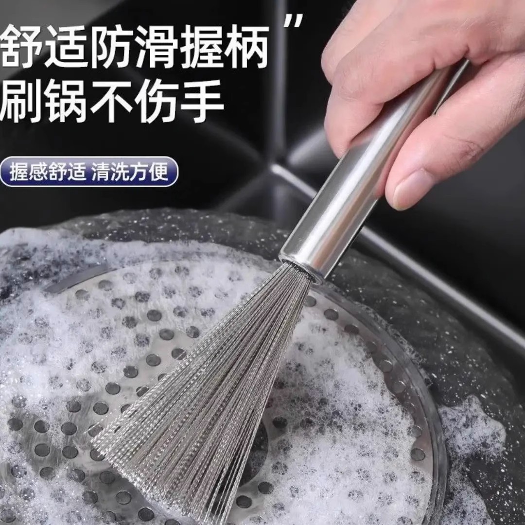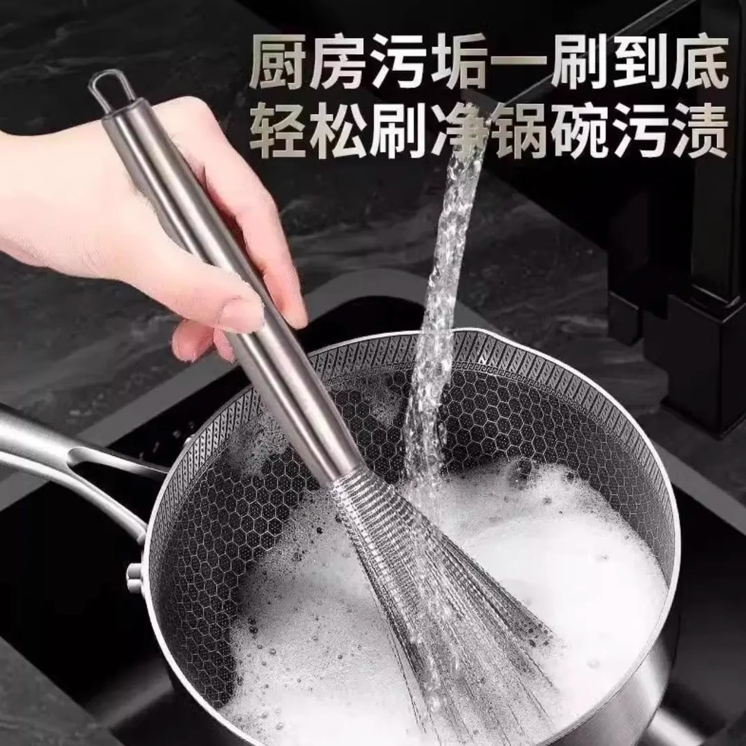 加厚不锈钢锅刷厨房专用不伤锅刷锅神器长柄洗锅刷清洁刷子钢丝球
