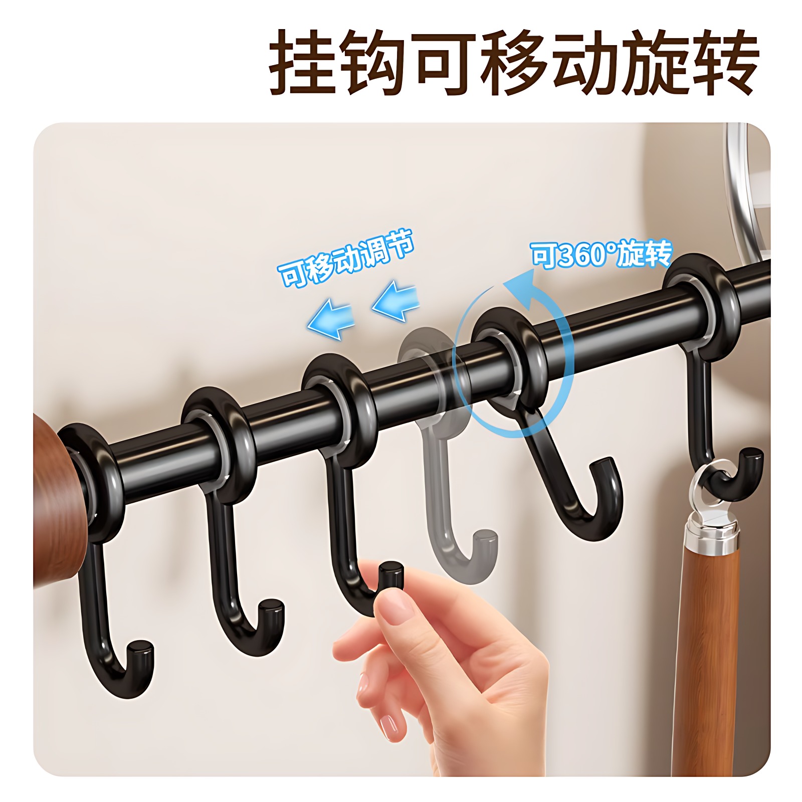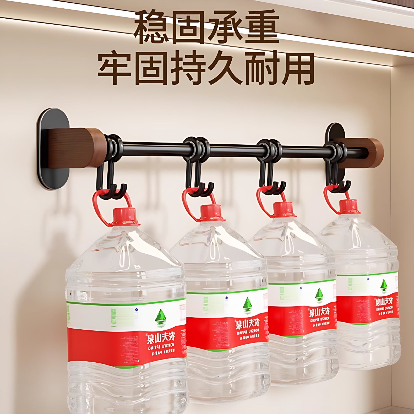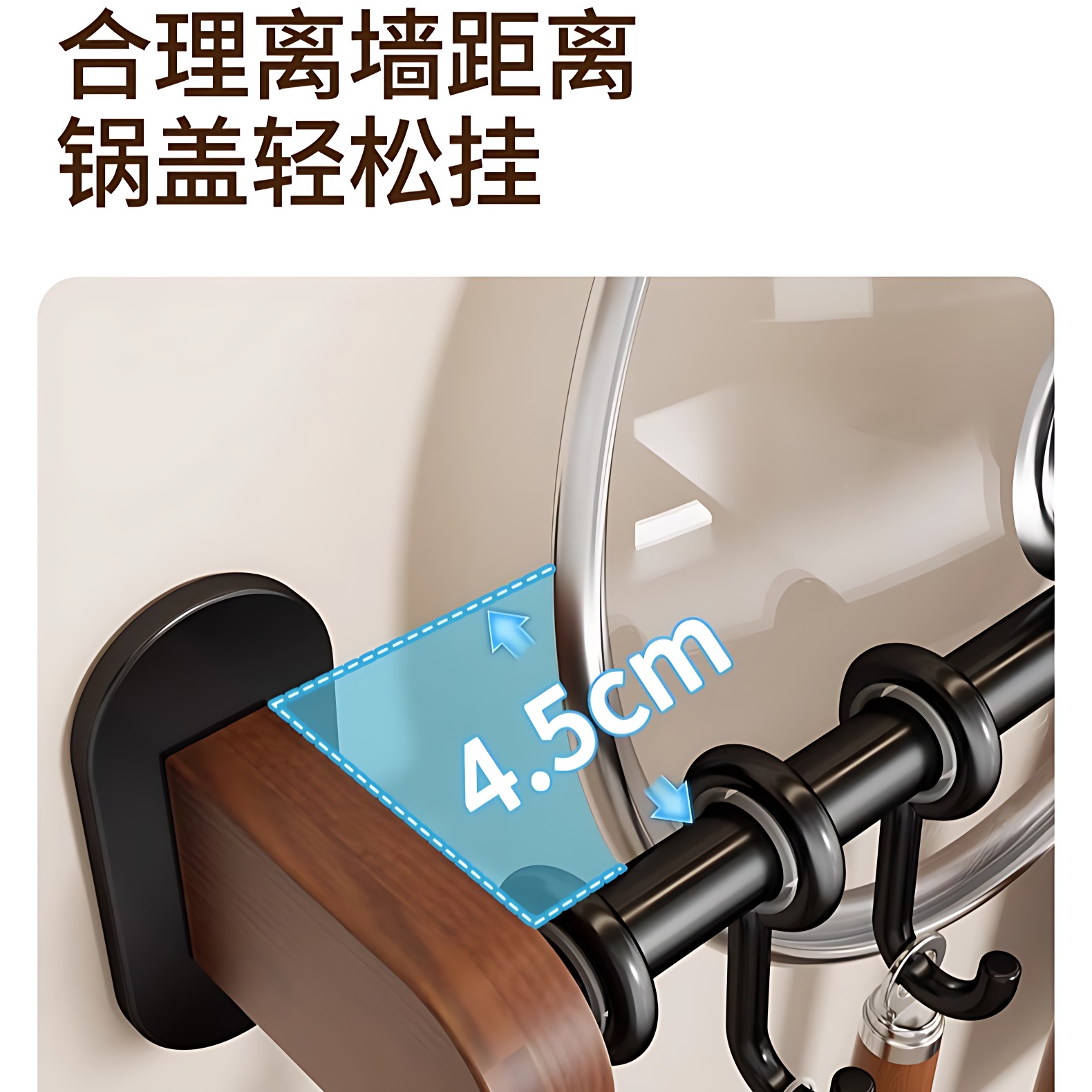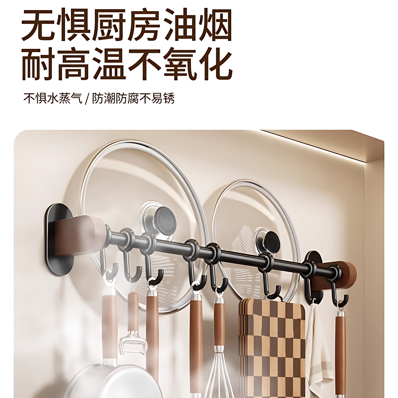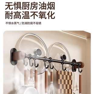 胡桃木厨房挂钩架免打孔多功能挂杆勺子锅铲壁挂式 置物架收纳挂架