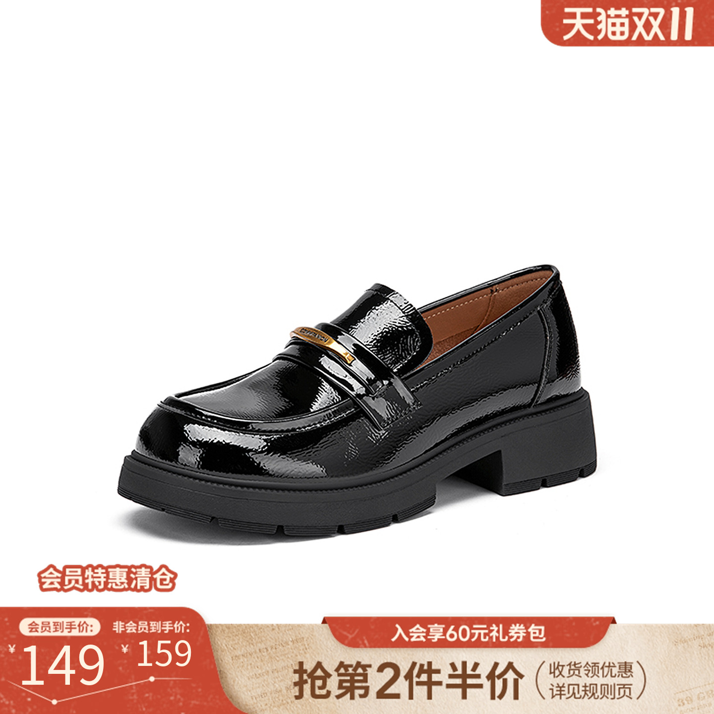 女2025年秋季 子女款 新款 百搭单鞋 通勤黑色小皮鞋 热风英伦风乐福鞋