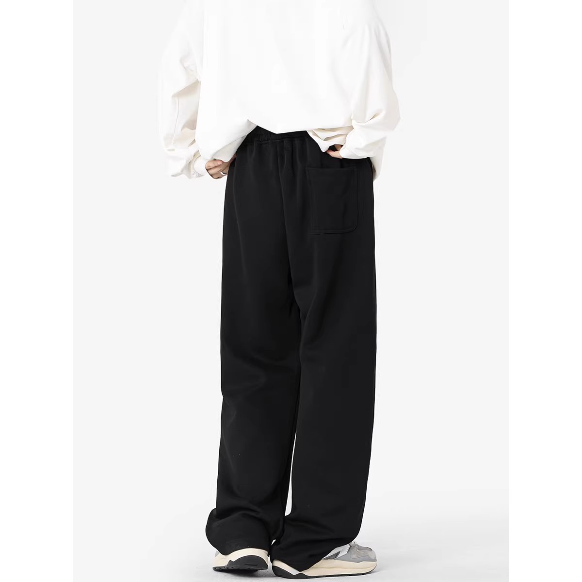 胖mm慵懒风松弛感加绒运动休闲裤 大码 女冬季 奶芙阔腿裤 子 黑色卫裤