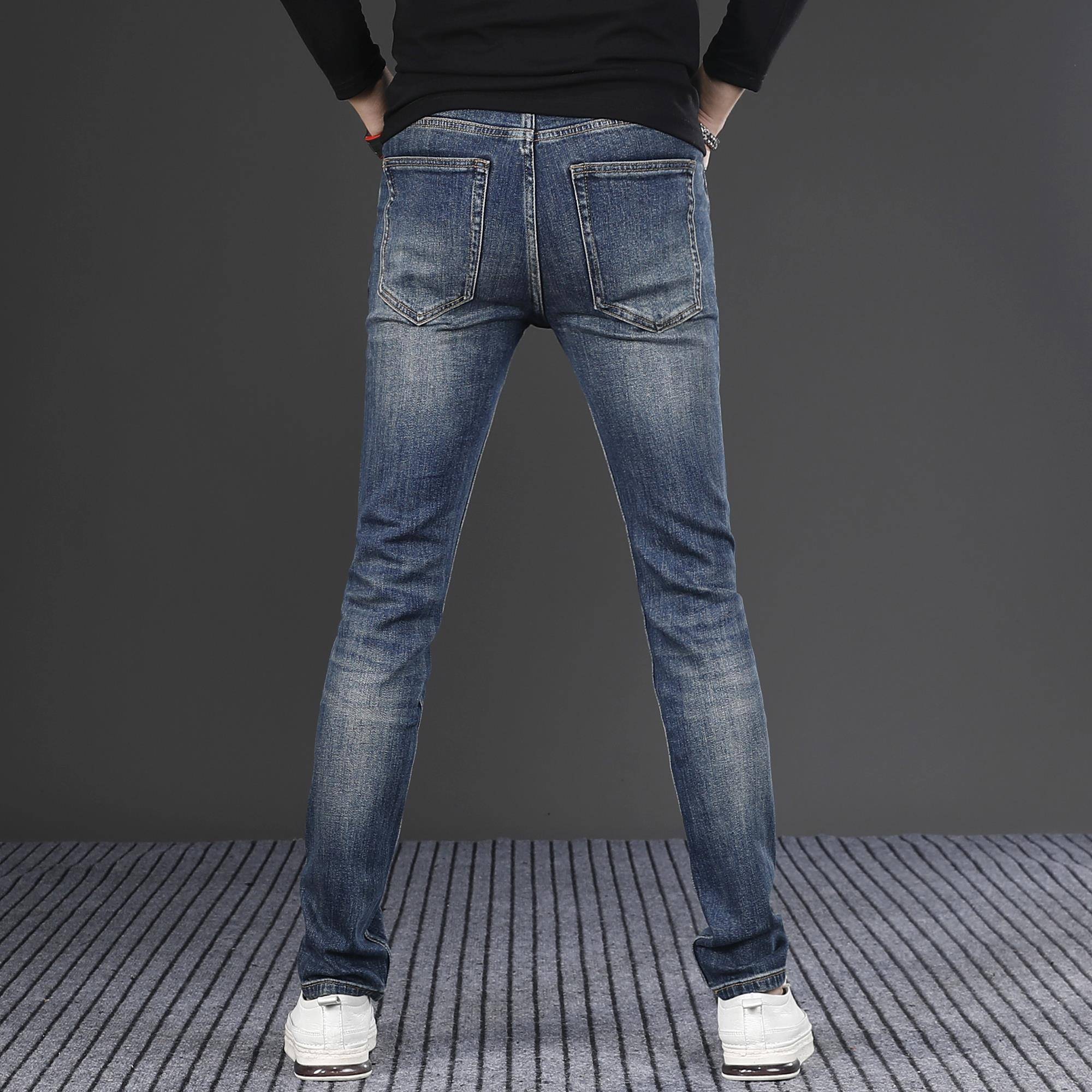 男新款 男士 小脚显瘦显高秋冬季 弹力修身 潮流高端1014h 蓝色牛仔裤