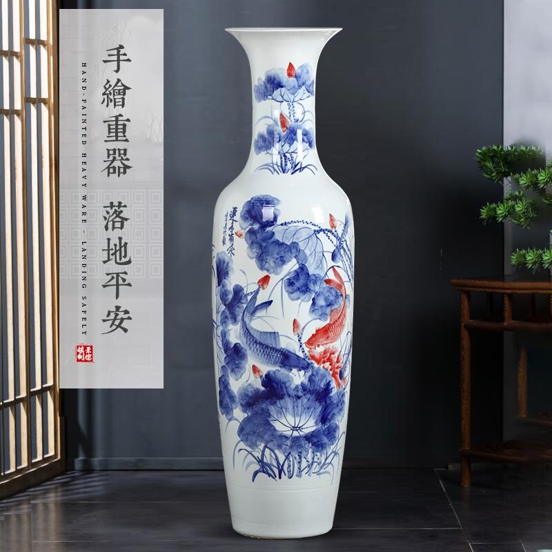 景德镇陶瓷手绘青花瓷落地大花瓶客厅装 饰品公司酒店开业乔迁摆件