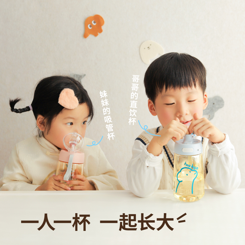 好好同学ppsu儿童吸管水杯塑料上学耐高温带刻度直饮杯子夏天水壶