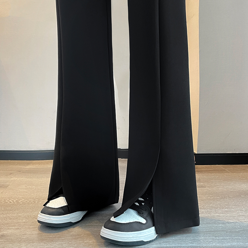 子黑色西装 裤 高腰直筒阔腿喇叭裤 开叉微喇裤 长裤 加绒裤 休闲裤 女裤