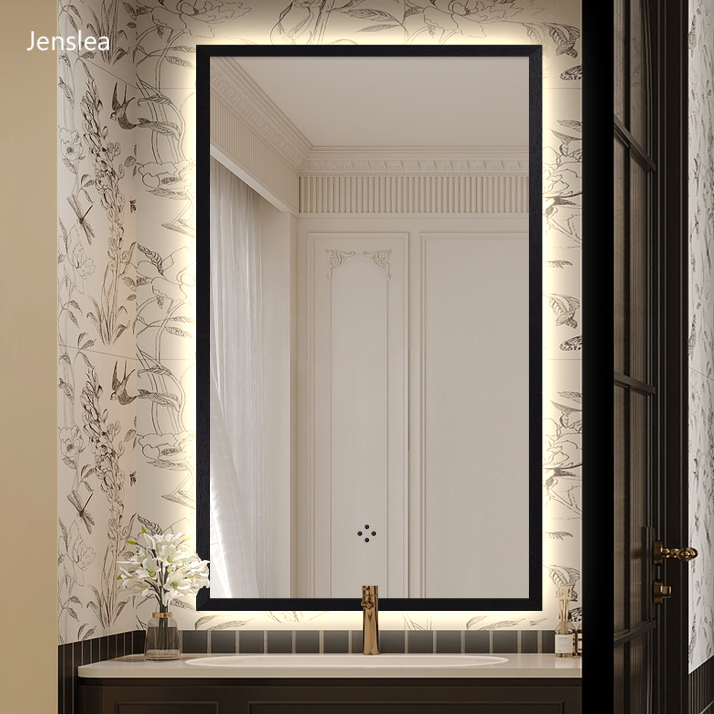 中古风带灯浴室镜壁挂卫生间实木框智能镜子洗手台防雾卫浴化妆镜