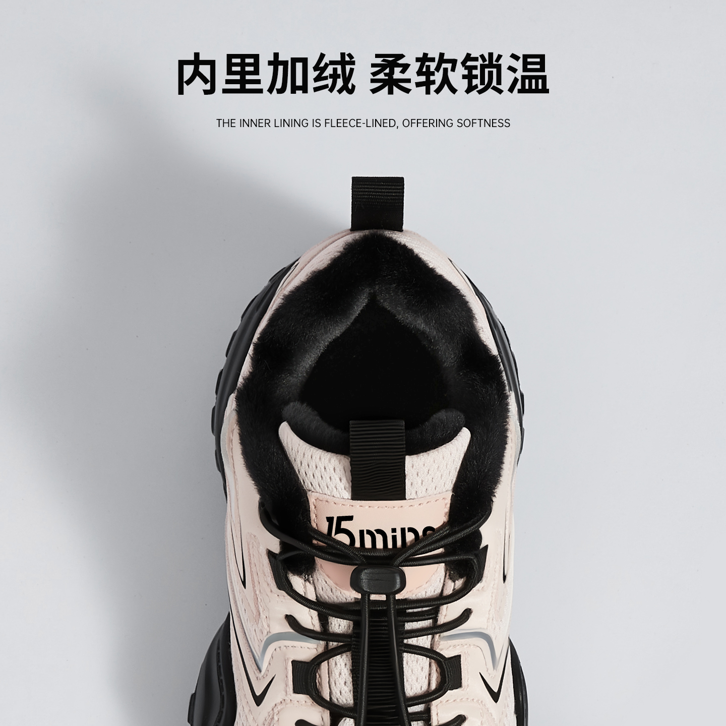 运动休闲鞋 15mins厚底老爹鞋 保暖棉鞋 加绒户外登山鞋 女2025新款