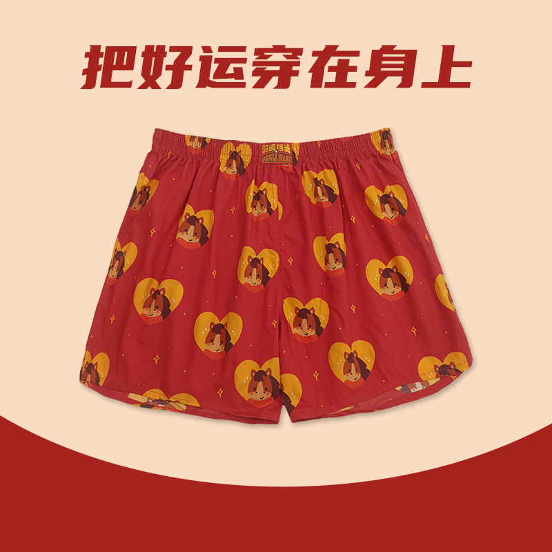 纯棉平四角短底裤 内裤 宽松女结婚孖烟通 男士 马年本命年红色阿罗裤