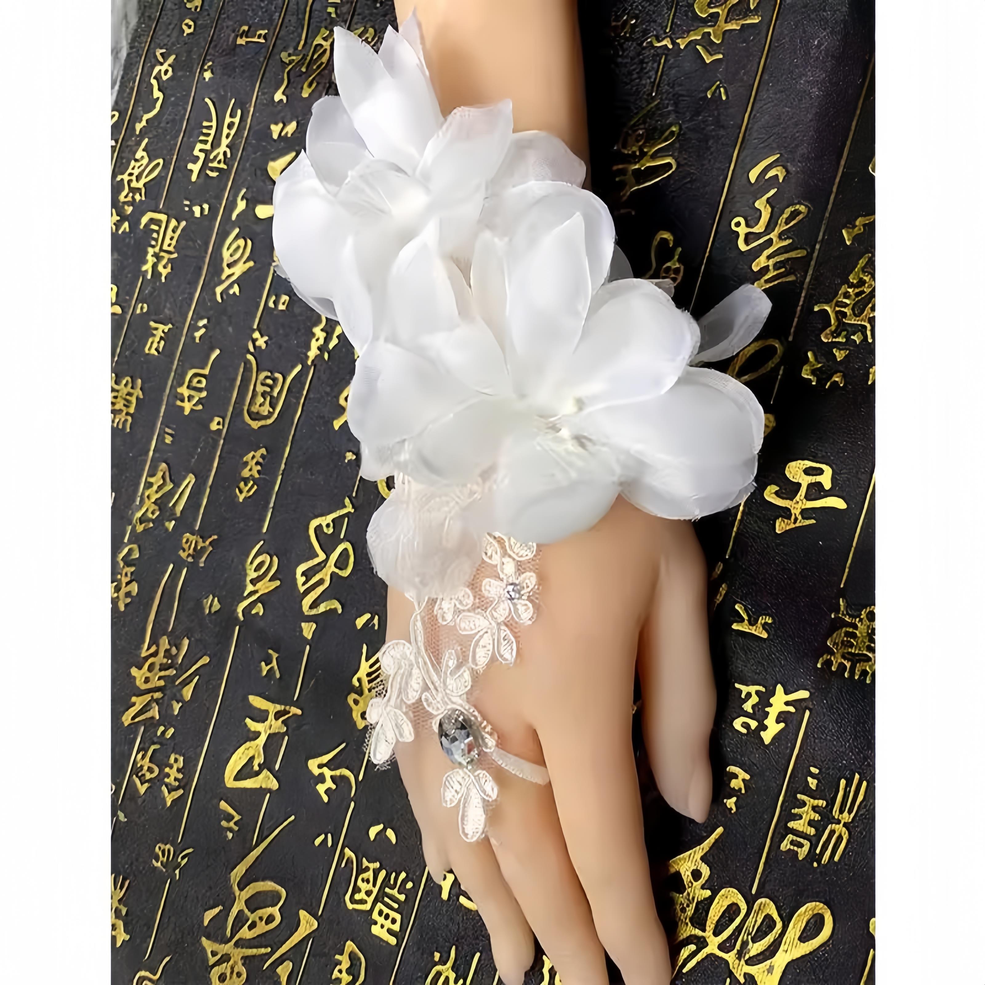 新娘婚纱礼服手套遮手臂花朵lolita镂空镶钻蕾丝结婚短款 配饰露指