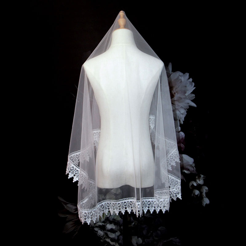 新娘头纱主婚纱新款 单双层白色蕾丝花边超仙拍照结婚 简约优雅短款
