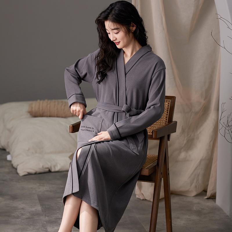 浴袍情侣2025新款 薄绒中长款 色保暖女士1009c 秋冬季 秋冬睡袍男款