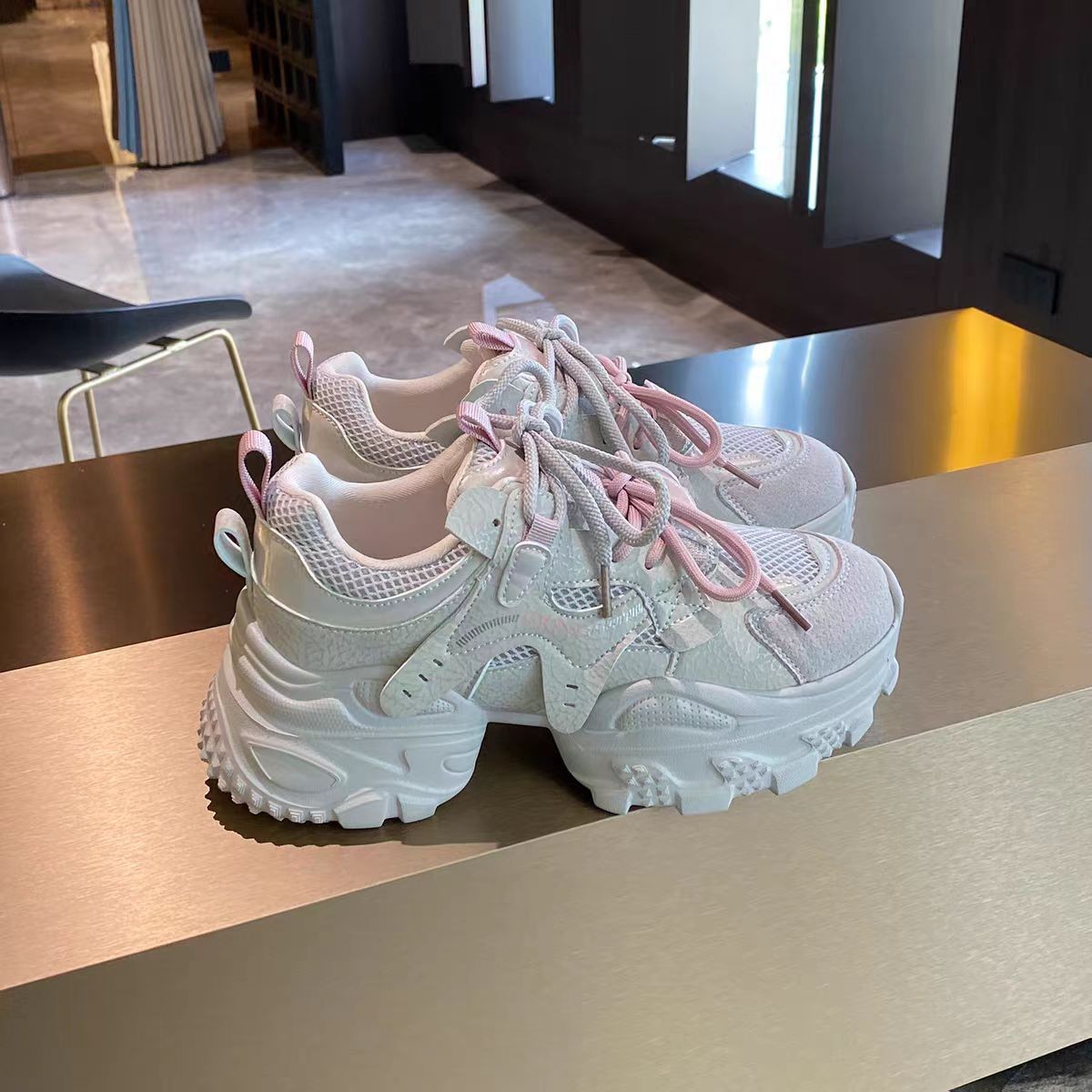 百搭休闲网面透气运动鞋 厚底增高双色鞋 秋季 女2025新款 潮 带老爹鞋