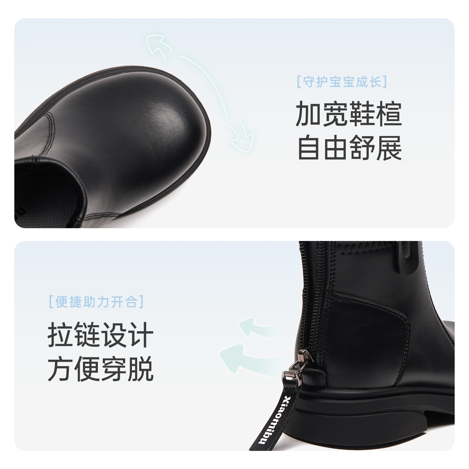 小米步女童靴子2025秋冬新款 百搭公主靴儿童软底英伦风皮靴潮 时尚