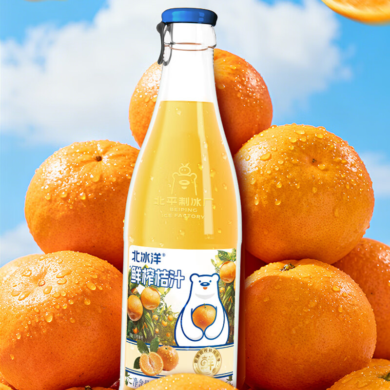 新品 北冰洋鲜榨苹果汁桔汁饮品236mlX12瓶老北京玻璃瓶汽水饮料