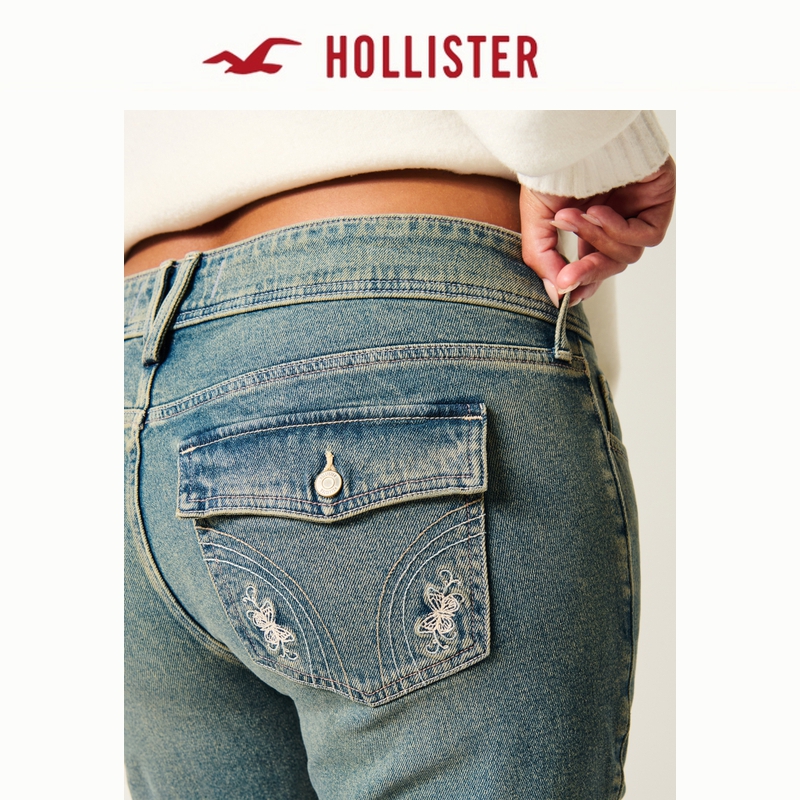 355 女装 5808 辣妹蝴蝶刺绣低腰微喇牛仔裤 Hollister25秋冬新款