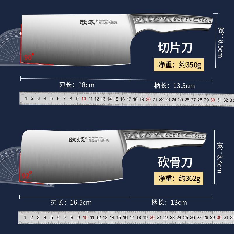 欧派菜刀厨师专用砍骨刀切片刀厨房家用不锈钢锋利切肉斩切两用刀