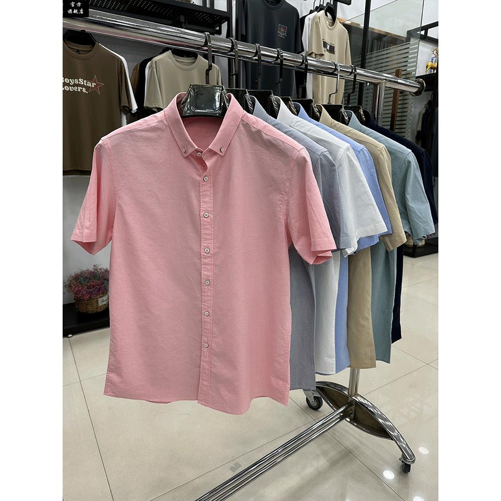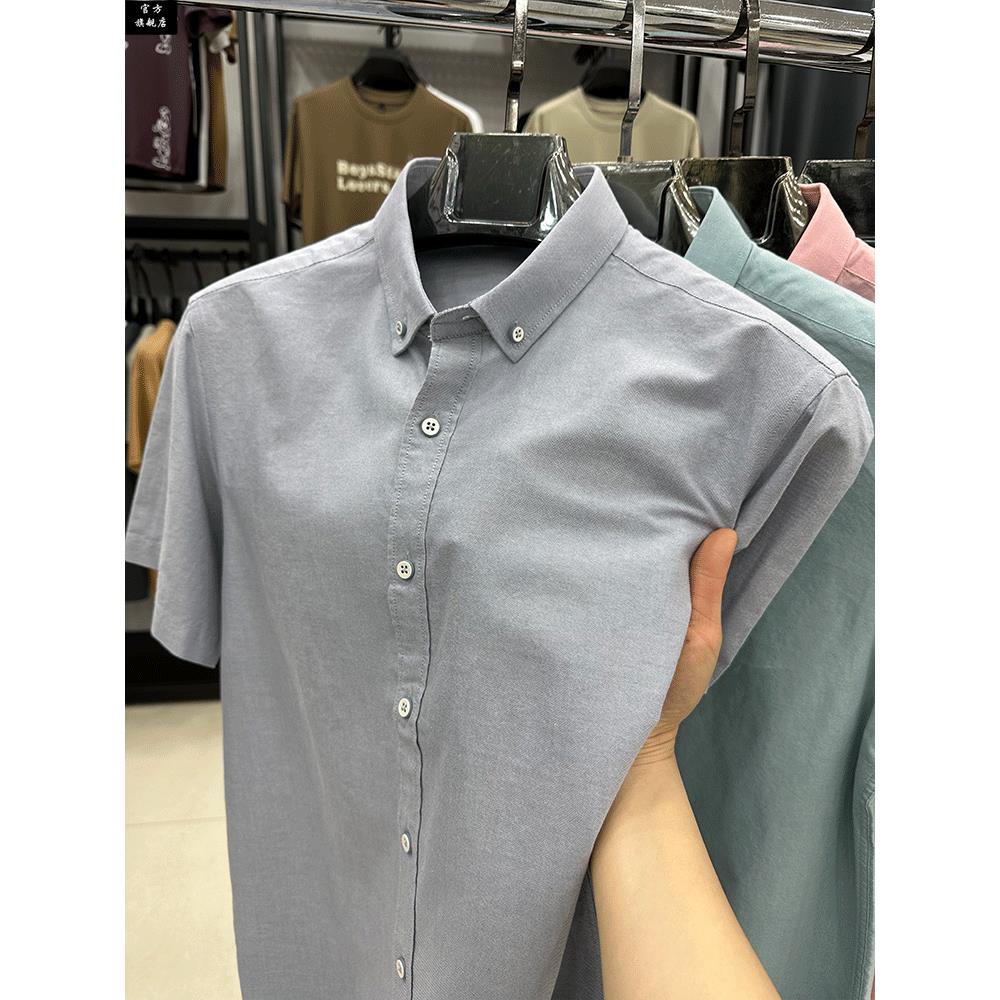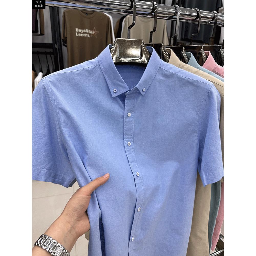 商务休闲寸衫 保罗官方100%纯棉 男纯色夏季 衬衫 牛津纺衬 高档短袖