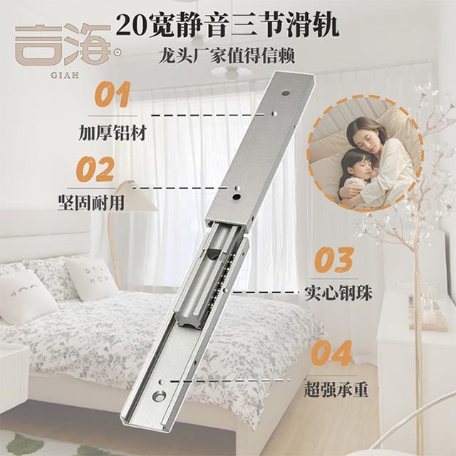 20宽三节铝合金轻型滑轨IDA61 SAR3工业轨道抽屉滑道线性导轨