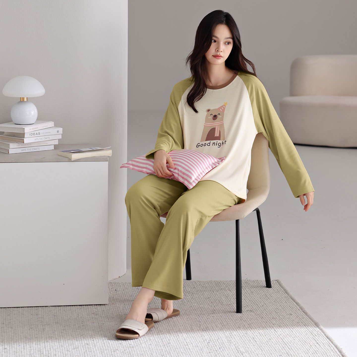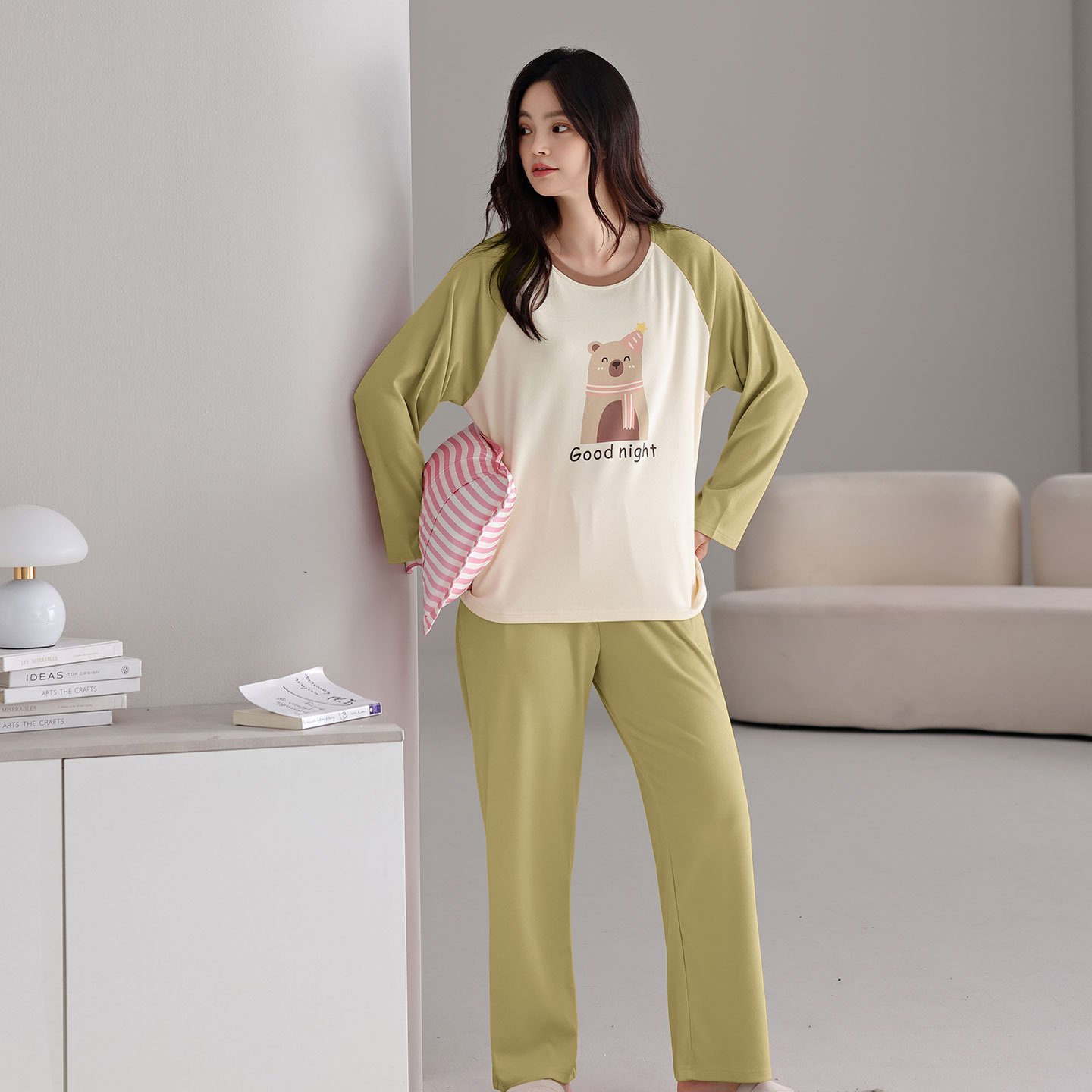 家居服套装 卡之恋长袖 纯棉加厚带胸垫冬睡裤 2025新款 睡衣女春秋季