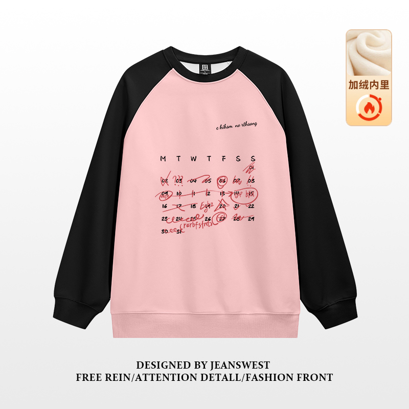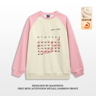 新品 加绒小众卫衣2025冬季 宽松上衣 圆领插肩袖 G2真维斯男女同款