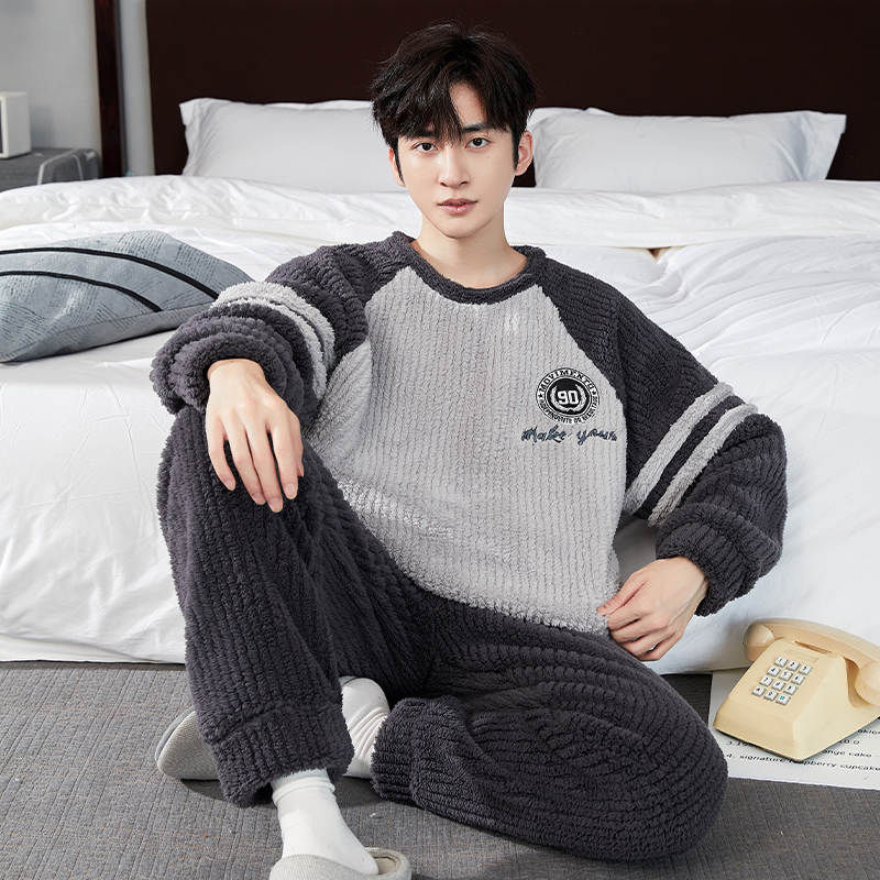 睡衣春秋款 青年家居服套装 圆领套头夏季 秋冬大码 薄长袖 莫代尔男士