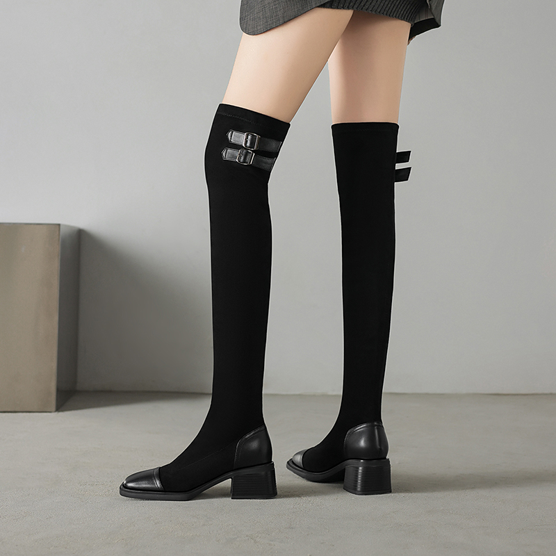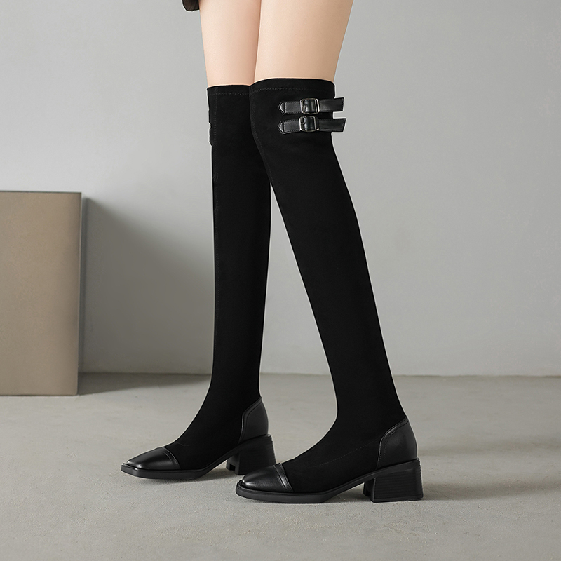 43冬季 新款 时尚 千足惠大码 百搭显瘦加绒弹力靴过膝靴棉鞋 女鞋