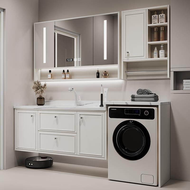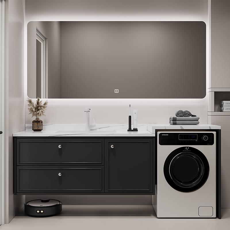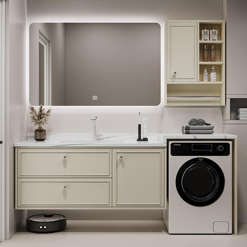 阳台洗衣机一体柜岩板浴室柜组合橡木洗漱台洗手池脸盆卫浴柜定制