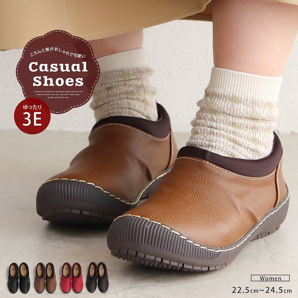 日本直邮女士休闲一脚蹬鞋 抗菌防臭弹性好易穿有黑色 3E宽舒适时尚