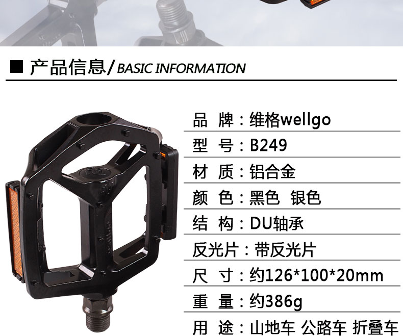 正品 山地车全铝合金踏板自行车脚蹬子 wellgo维格山地车轴承脚踏