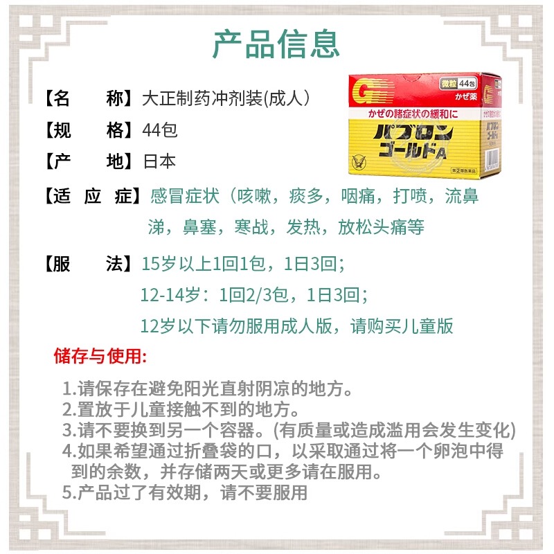 大正制药日本成人儿童感冒药小儿流鼻涕鼻塞冲剂日本原装 进口旗舰