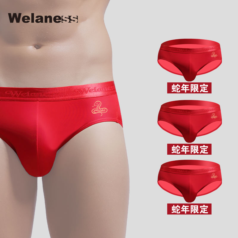 头礼盒装 本命年男士 冰丝结婚大红色属牛蛇年鸿运短裤 男三角裤 内裤