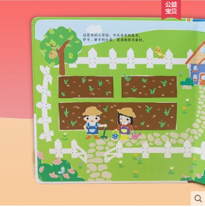 6岁宝宝纸板书触摸认知3d亲子互动翻翻书 小菜园 儿童社会启蒙认知体验立体手工书单册角色扮演游戏书家庭场景益智绘本我