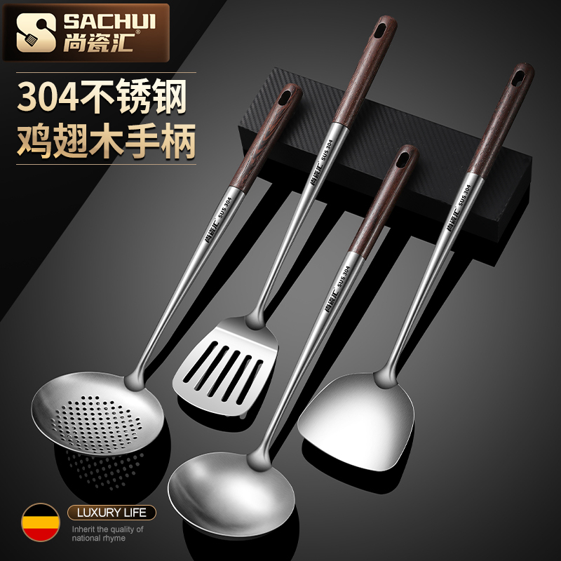 厨师炒勺304不锈钢长柄铲子炒菜勺子厨具套装 锅铲家用厨房汤漏勺