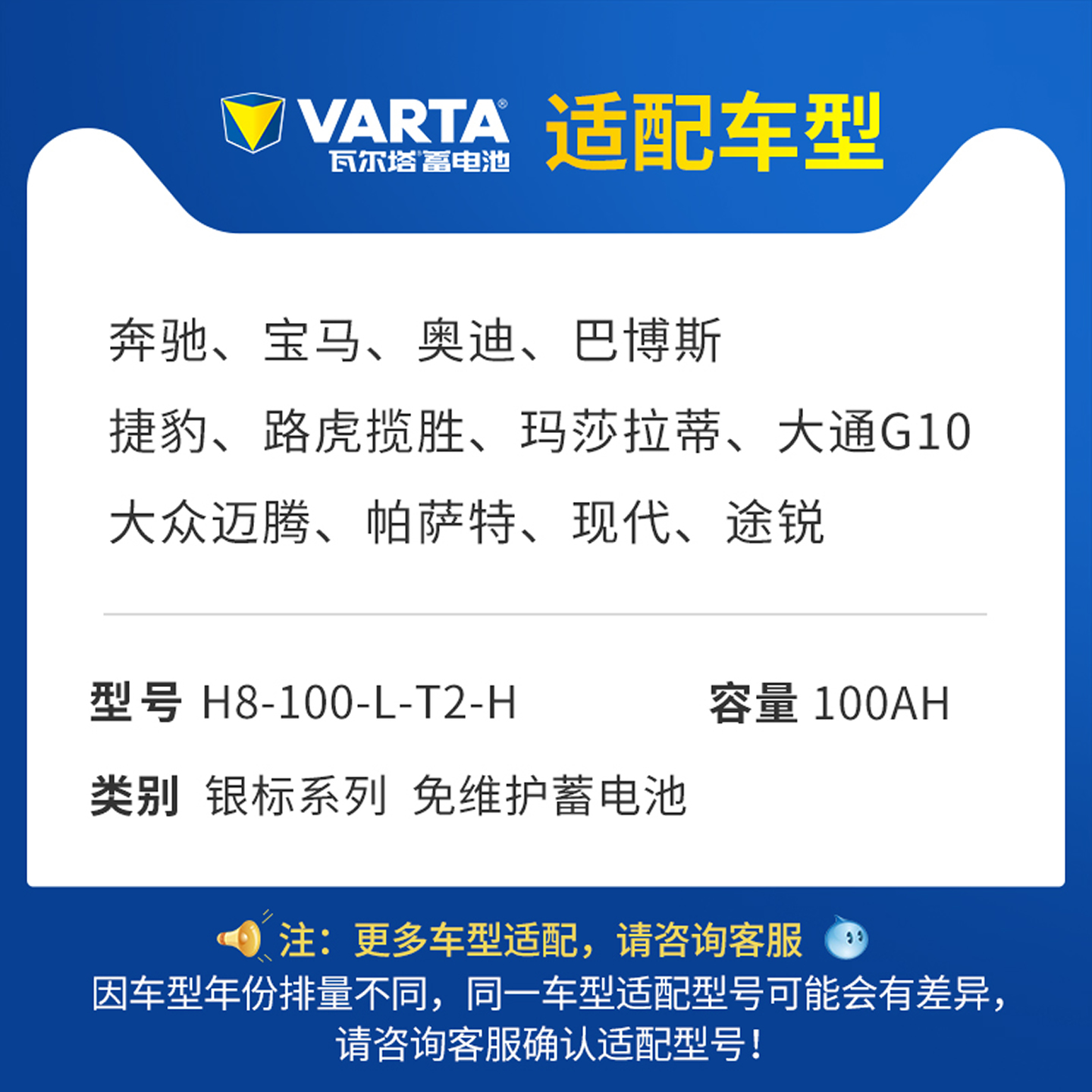 瓦尔塔汽车电瓶蓄电池100 奥迪A6宝马3系5系奔驰电瓶汽车电池