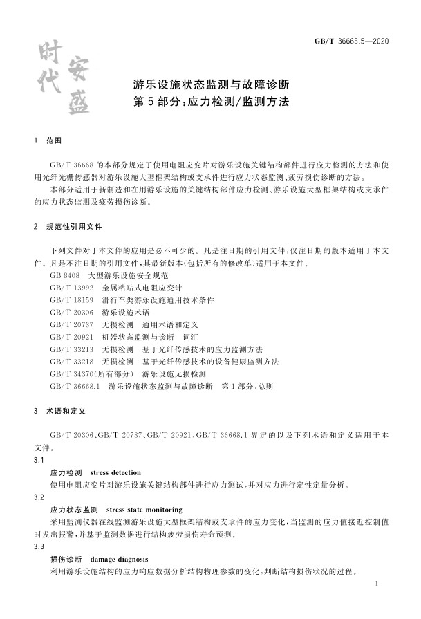 第5部分:应力检测 2020新版 监测方法 游乐设施状态监测与故障诊断 现货 2020 36668.5