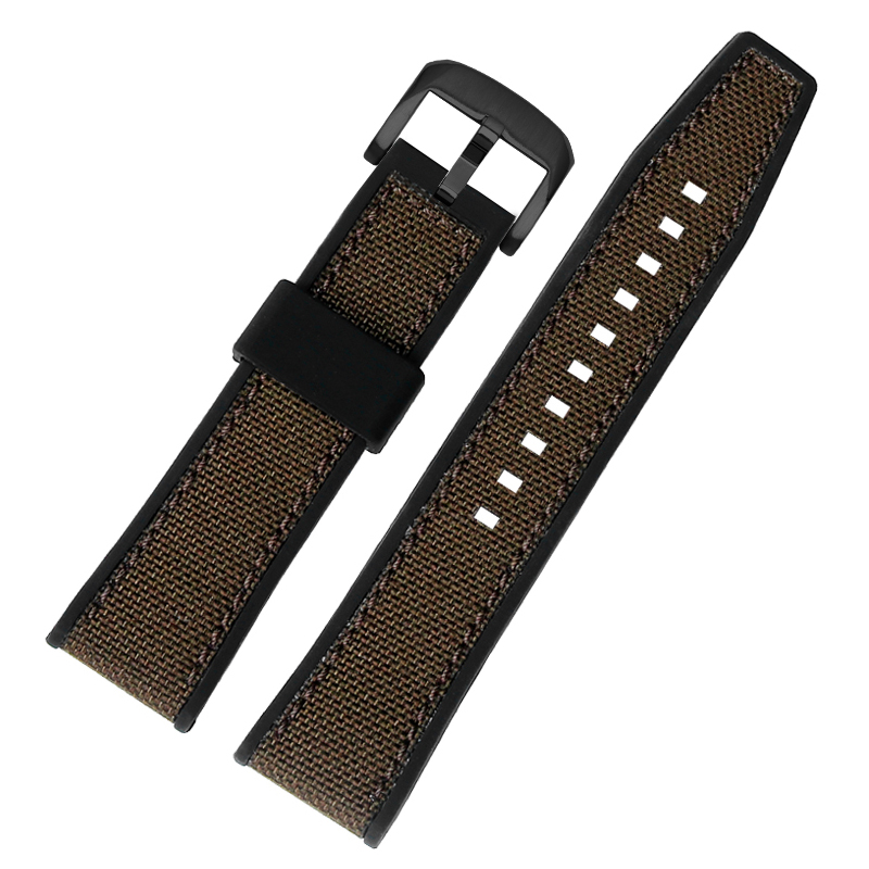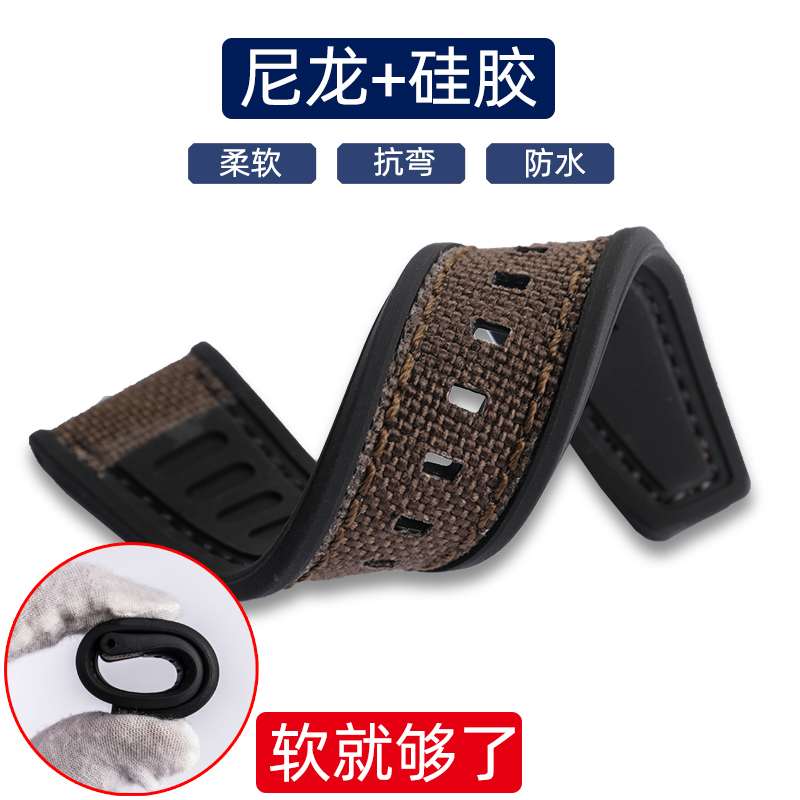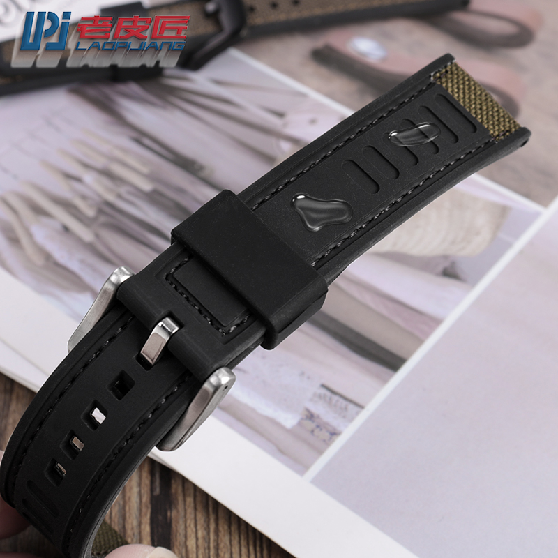 22mm 帆布拼接硅胶底表带防水 适配精工5号水鬼西铁城天梭速驰