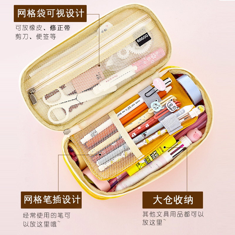 笔袋ins日系帆布高颜值小众透明简约糖果色新款 never巨能装 无忧 一年级笔袋男孩小学生女孩学习用品 正品
